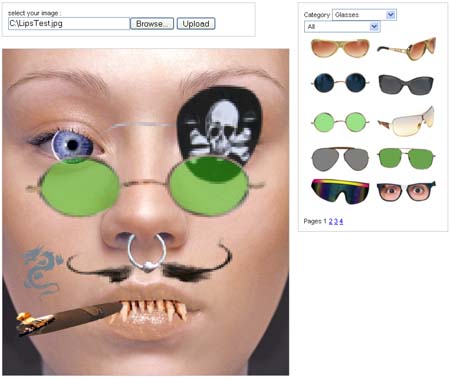 You might call it Pimp if you want it to sound cooler, but all in all pikipimp.com will help you make fun of people by uglying their images. Check out how I've uglified this beautiful model. You won't see too many masterpieces coming from there, maybe also because it isn't meant for creating works of art. The "Pimping" is easily done and is accessible for everyone. You simply upload your photo and immediately you can start to drag elements like beards and glasses on it.