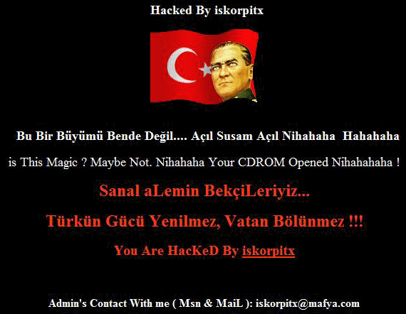Apparently iskorpitx is a famous Turkish hacker who's been doing this for a long time, he even got a promo video in youtube. Is that a Web2.0 hacker or what?!