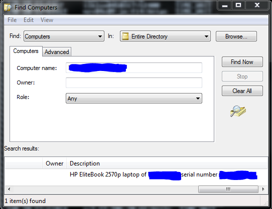 Since it's a big company the hostname is some kind of generated serial which doesn't give much information.
